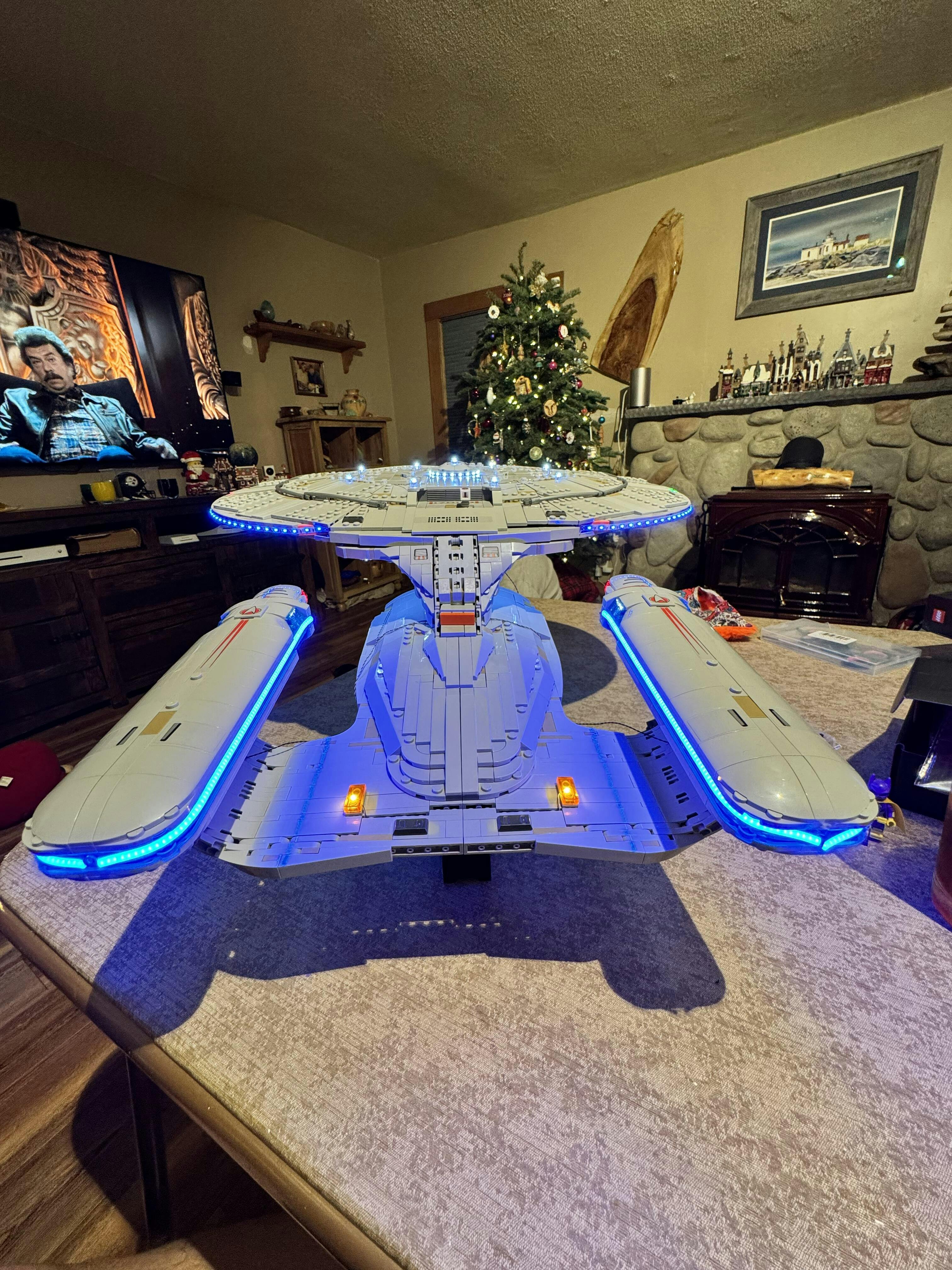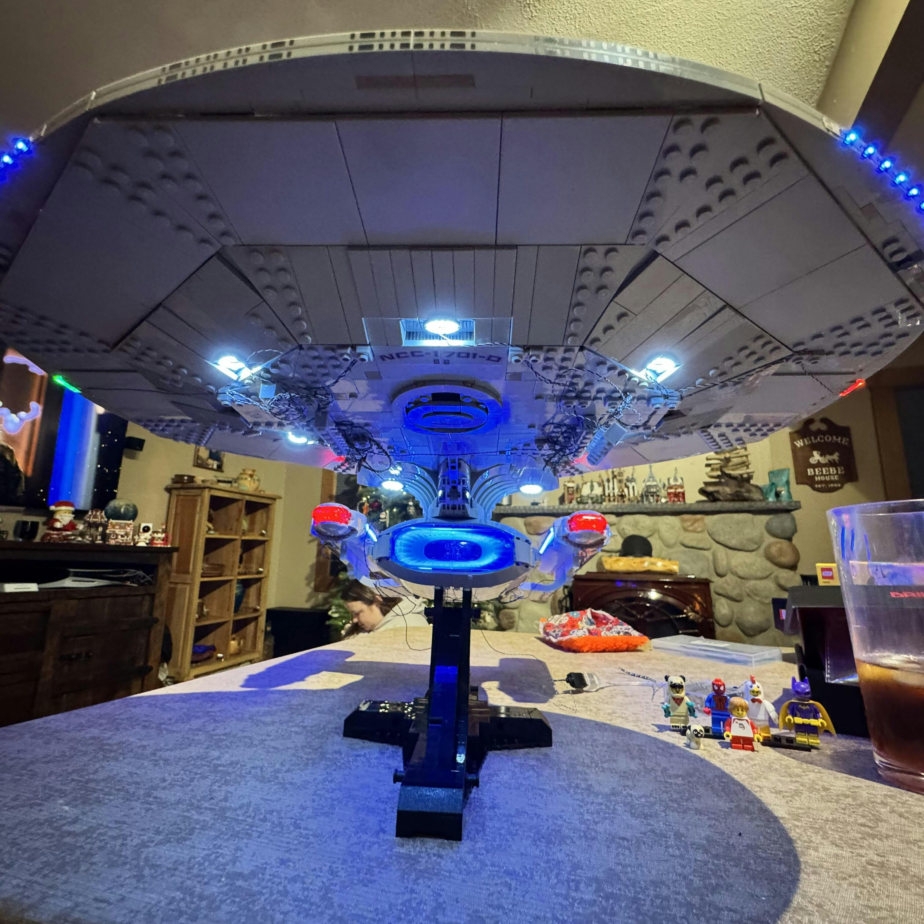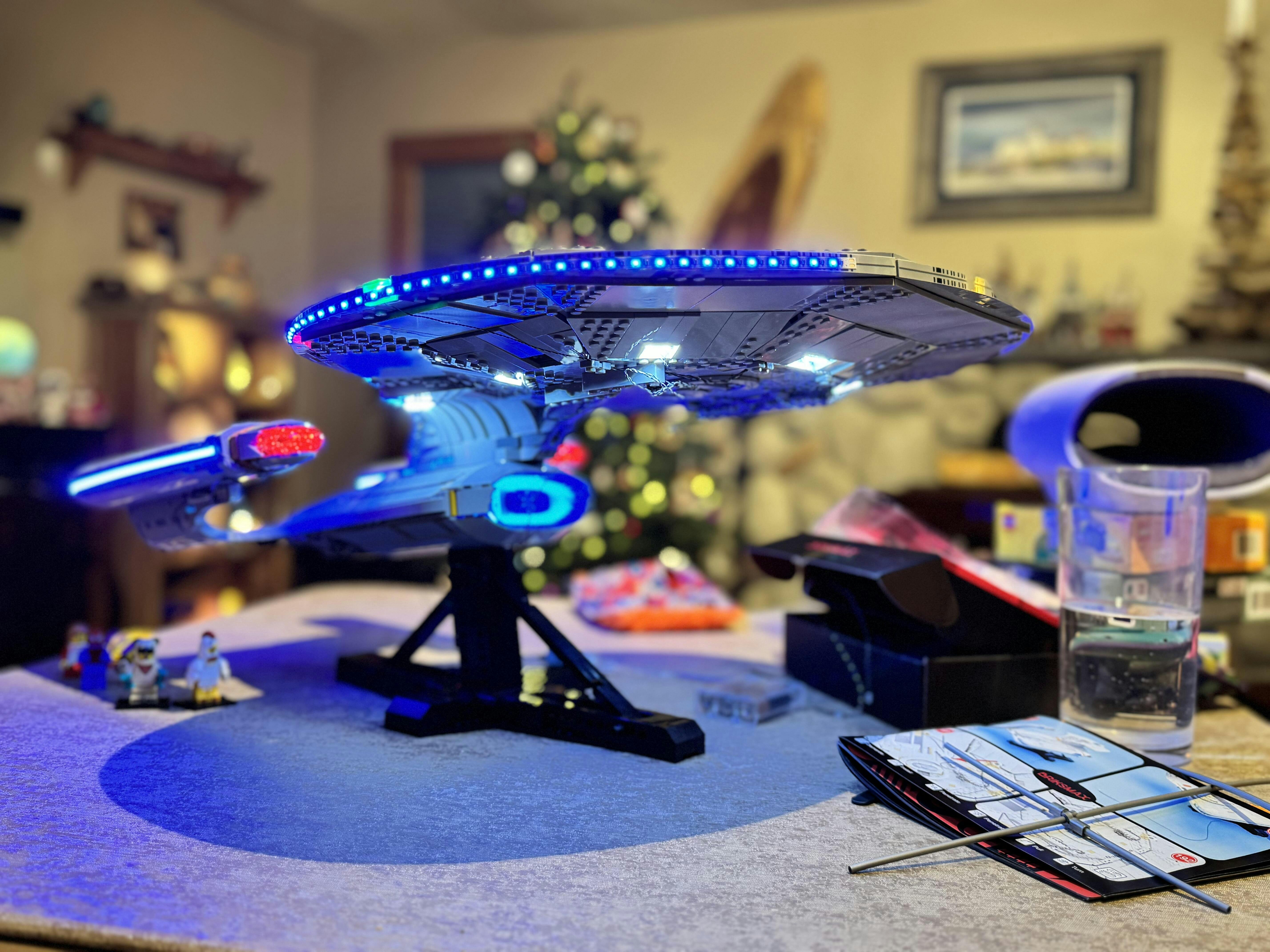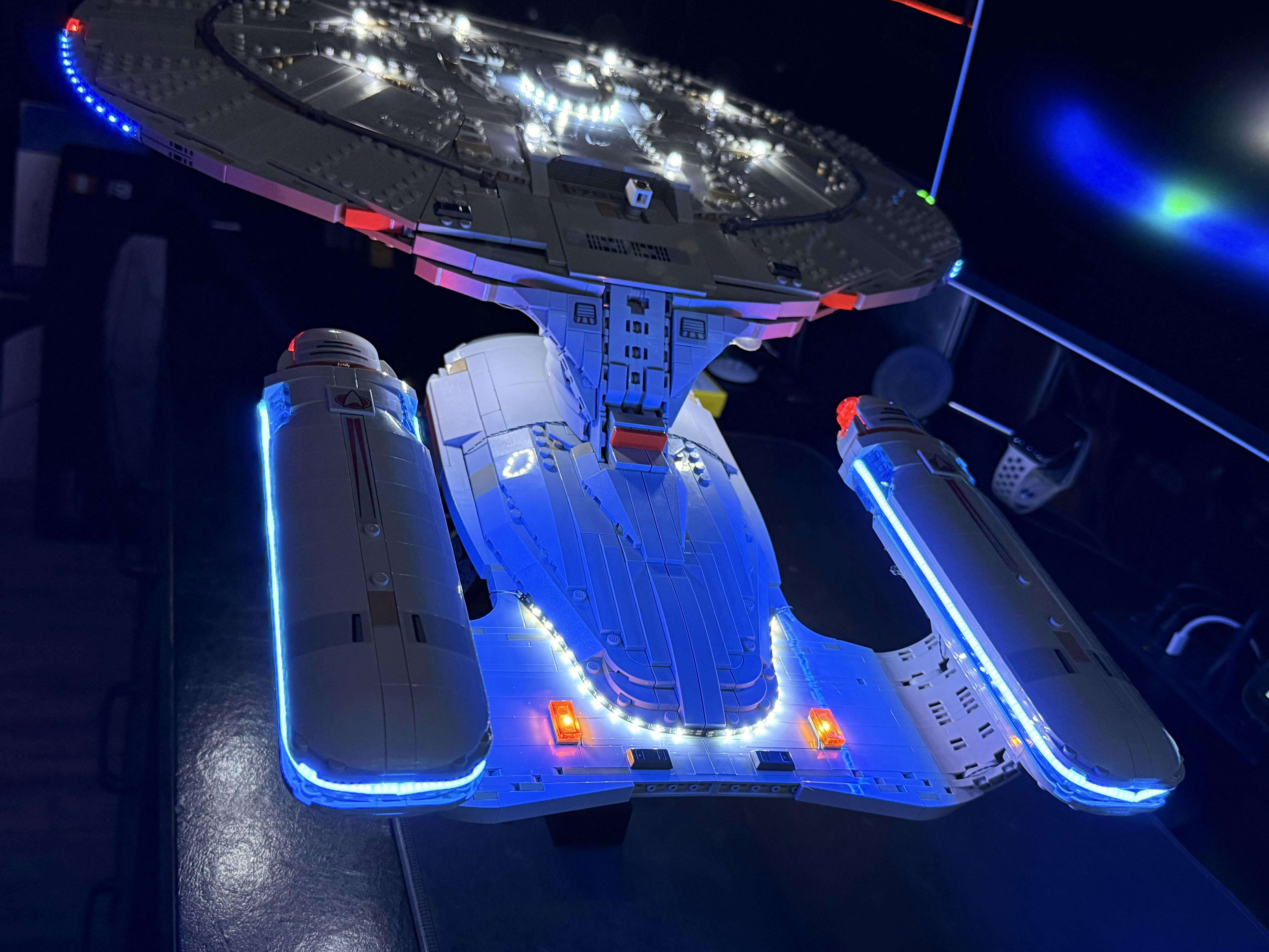 I managed to catch this light kit while it was in-stock, ordering direct from Lightailing, and it arrived to me in Canada about a week later. The instructions were generally OK, but sometimes the photos they use tend to be bit dark. That said, the Enterprise looks magnificent fully lit up, in particular the warp nacelles – they used a fantastic light strip that beats every other lighting solution for this Lego set out there – buy this set for this reason alone! As great as this light kit looks, I do have some thoughts about it. The good: excellent nacelles, good placement of various lights around the model, new Briksmax 2.0 cable management is excellent. The not-so-good: the instructions were clear, but the placement of wires was poorly – or perhaps hastily – done by the designers… lots of exposed wires in the official instructions; I easily modified the path of the wires on the saucer, on the nacelles and engineering hull to hide the wiring almost completely. Also, brick changes required for the underside of the nacelles were clunky… this was improved upon using parts removed elsewhere from the model, restoring its curved look. And finally – the so-so: would have loved to have three extra lights to stick in the impulse engines… this is the only miss on the light set, which other light sets include, but was omitted here. Overall… with a little Lego modding, this is possibly the best use of lighting on any set I’ve lit up so far (roughly 30 and counting), and this is the BEST looking light set I’ve seen for this model.